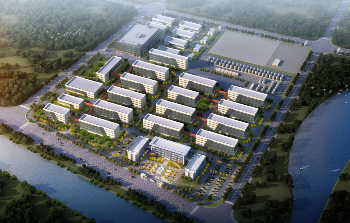 Perspective view of the factory front area